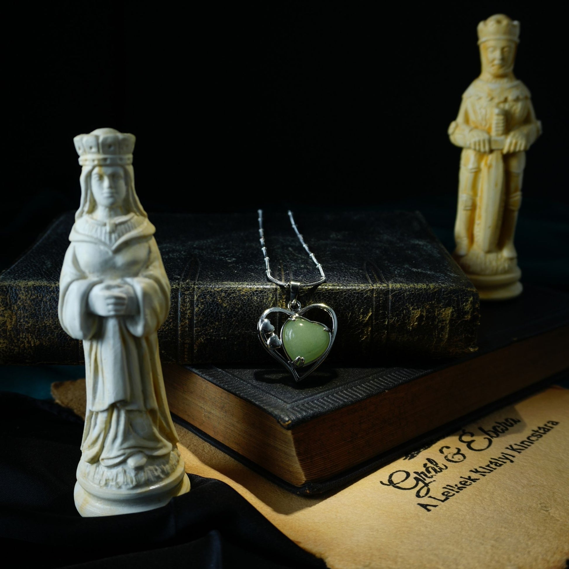 Finom, lágyan áttetsző zöldje békét áraszt, mintha egy tavaszi lomb hűs árnyéka pihenne a bőrön. A szív forma a szeretet és nyitottság szimbóluma, az aventurint pedig régóta a szerencse, bőség és könnyed életáramlás kövének tartják.