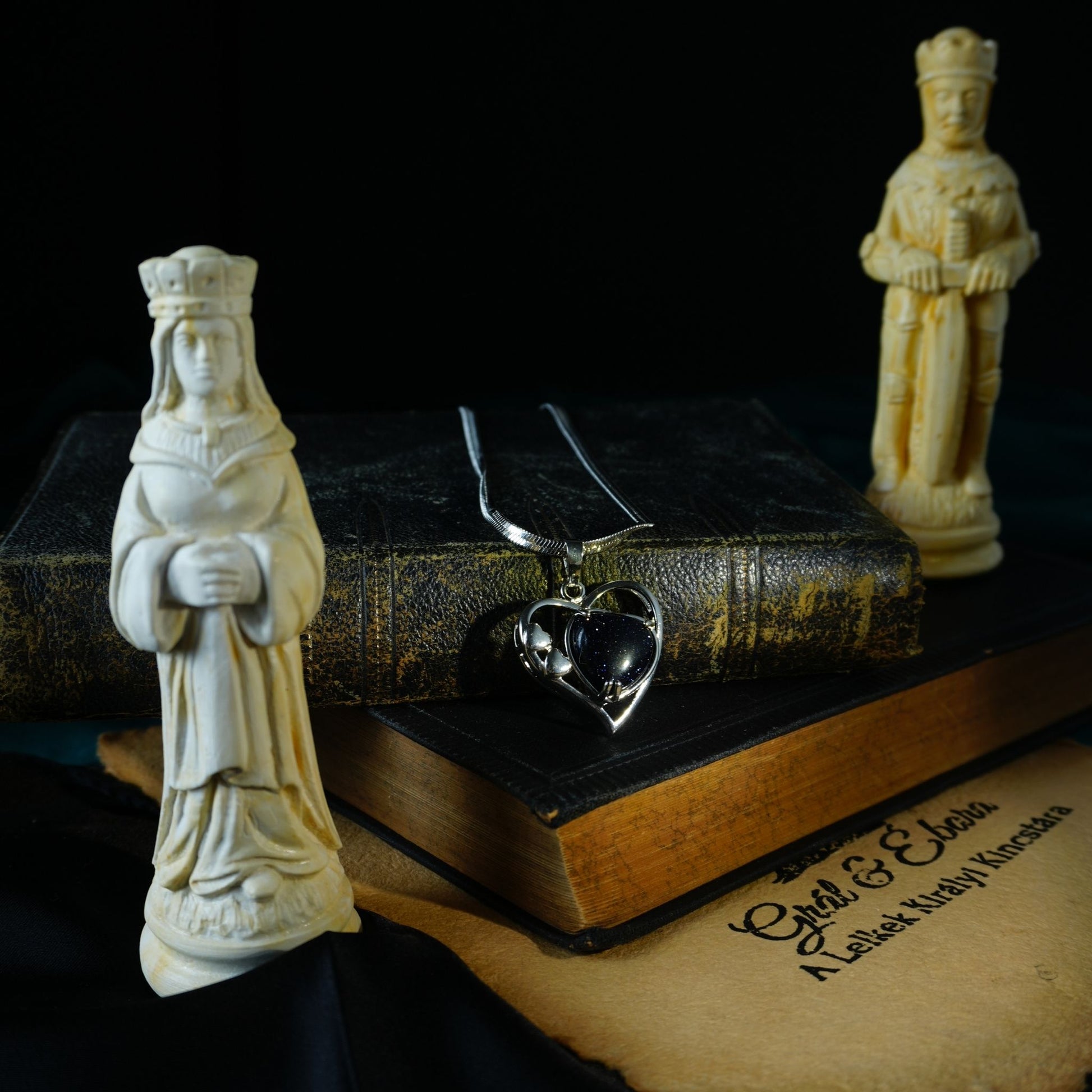 A szív forma a szeretet és érzelmi nyitottság jelképe, a kék napkő pedig modern, misztikus megjelenést ad, amely magára vonja a tekintetet.